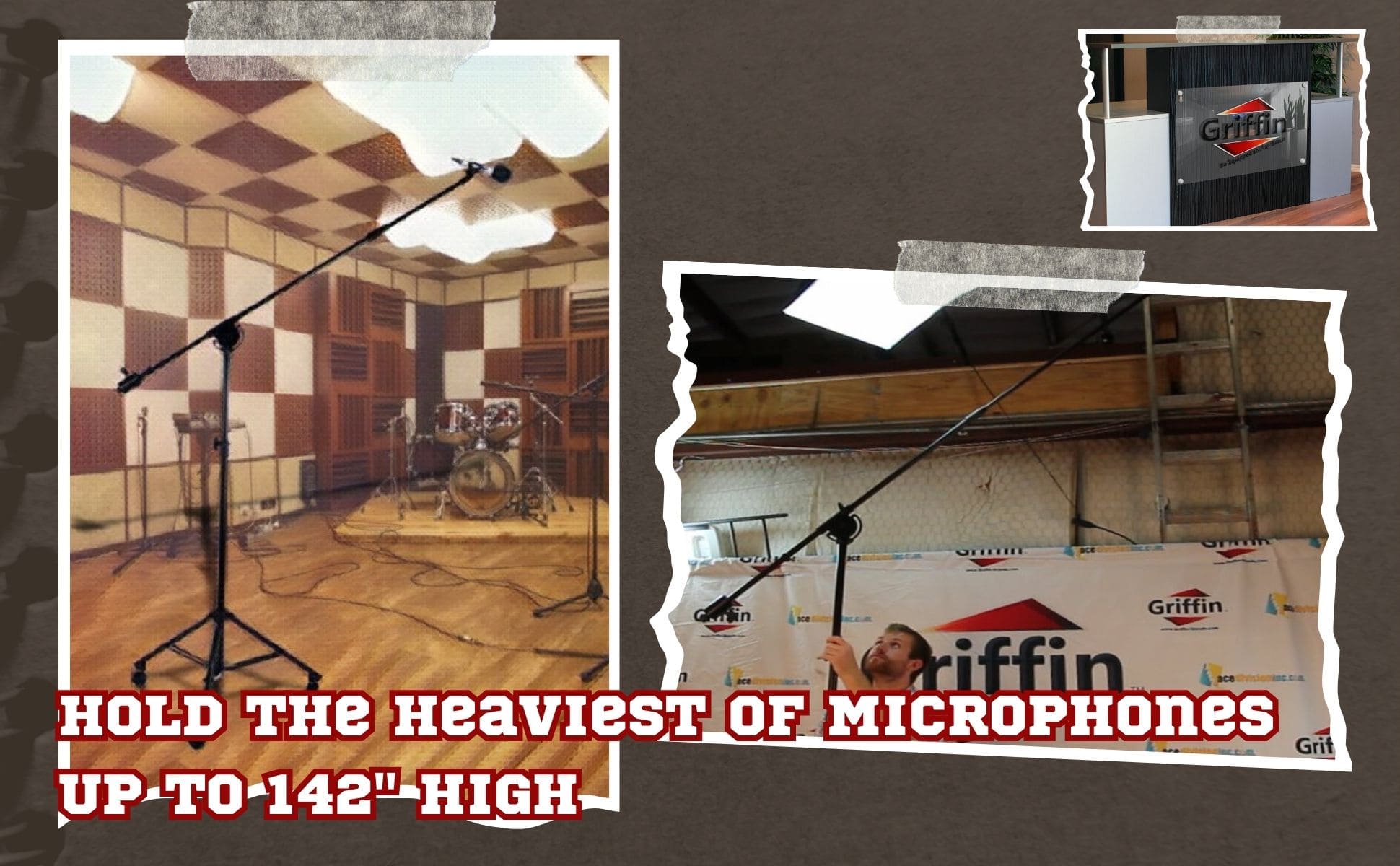 | Studio Microphone Boom Stand | Versatile recording setups | Adjustable boom arm | Versatile positioning, sturdy tripod base | Takes up more space, difficult to transport |