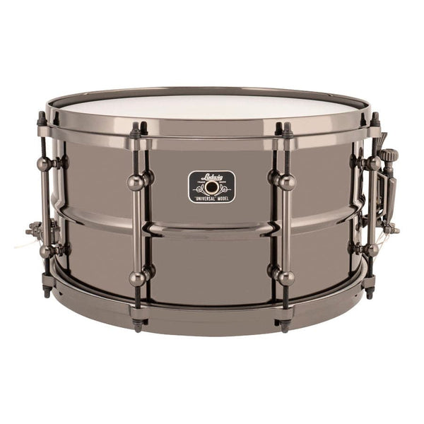 Ludwig Universal Snare Drums Ludwig's Universal Snare Drum series offers the discerning drummer a new sonic palette of sounds to complement virtually any style of music. Universal Snares were designed to bring unique musical voices to the stage that work well in various musical styles across multiple tuning ranges. Sonic range and richness have never been so accessible! METAL: Modeled after our famous Black Beauty, emphasizing optimal response, sensitivity, and dark warm tones. The Universal Metal Brass drum delivers a rich, dynamic range suitable for various tuning ranges and head combinations. Universal Metal drums are fitted with heavy duty tube lugs, P88i throw-off, P35 butt plate, and 20 strand snare wires. Quality and versatility to fit any budget! Offered in our most popular sizes as well as two hoop options: 5.5x14 6.5x14 7x13 8x14 Black Nickel Die-Cast Hoops have a sharper attack and cut in more aggressive playing styles. Die-cast offers a loud, crisp, clean rimshot and cross-stick sound. Chrome-Plated Triple Flange Hoops have a balanced and controlled sound. Triple flange hoops offer a softer, more subtle rimshot and cross-stick sound. Exceptional craftsmanship and versatile design make the Ludwig Universal Brass Snare Drum the perfect choice for any drummer, regardless of their musical style or budget. With a wide range of sonic possibilities, this drum is capable of producing rich, warm tones as well as sharp, aggressive attacks. It's the ultimate tool for any musician looking to make their mark on the stage.