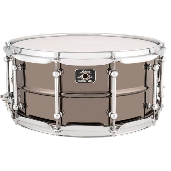 Ludwig Universal Snare Drums Ludwig's Universal Snare Drum series offers the discerning drummer a new sonic palette of sounds to complement virtually any style of music. Universal Snares were designed to bring unique musical voices to the stage that work well in various musical styles across multiple tuning ranges. Sonic range and richness have never been so accessible! METAL: Modeled after our famous Black Beauty, emphasizing optimal response, sensitivity, and dark warm tones. The Universal Metal Brass drum delivers a rich, dynamic range suitable for various tuning ranges and head combinations. Universal Metal drums are fitted with heavy duty tube lugs, P88i throw-off, P35 butt plate, and 20 strand snare wires. Quality and versatility to fit any budget! Offered in our most popular sizes as well as two hoop options: 5.5x14 6.5x14 7x13 8x14 Black Nickel Die-Cast Hoops have a sharper attack and cut in more aggressive playing styles. Die-cast offers a loud, crisp, clean rimshot and cross-stick sound. Chrome-Plated Triple Flange Hoops have a balanced and controlled sound. Triple flange hoops offer a softer, more subtle rimshot and cross-stick sound. Elevate your drumming to new heights with Ludwig's Universal Snare Drum series. Designed for maximum flexibility, these drums deliver a rich, dynamic range that can suit any genre or playing style. With options for both Die-Cast and Triple Flange hoops, this series offers the perfect blend of power and control to enhance your sound. The Universal Metal Brass drum is the ultimate choice for those seeking a darker, warmer tone and unparalleled response and sensitivity. Upgrade your sound and expand your repertoire with Ludwig's Universal Snare Drum series.