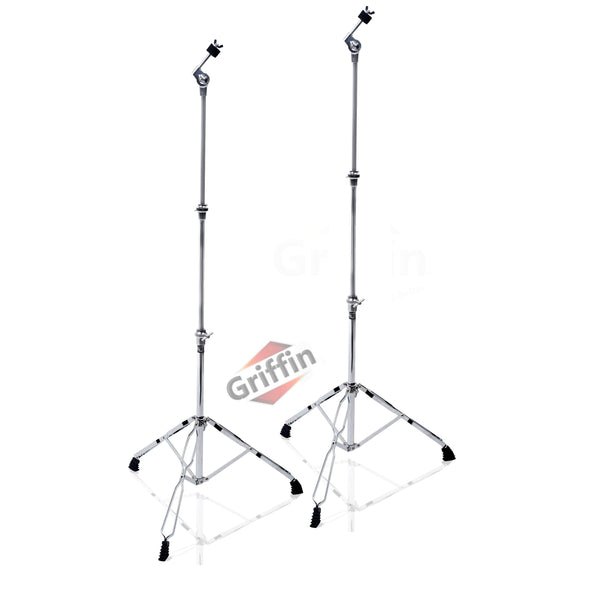 These lightweight cymbal straight stands are sturdy enough to hold all standard cymbals with ease. With three interlocking poles, each cymbal straight stand allows for effortless height adjustment from 29 inches up to 65 inches. Each chrome cymbal straight stand features slip-proof cymbal positioning and utilizes double-braced legs for ultimate stability. The double-braced straight cymbal stands rubber leg tips prevent slippage, keeping the cymbal straight stand nicely in place during all your drum solos. Also included is a gear system cymbal tilter with a steel washer and wing nut as well as vinyl tubing and cymbal felts. Keeping in mind that drummers are always on the go, even with double-braced legs, this straight cymbal stands folds up to a nice and neat package for ultimate portability