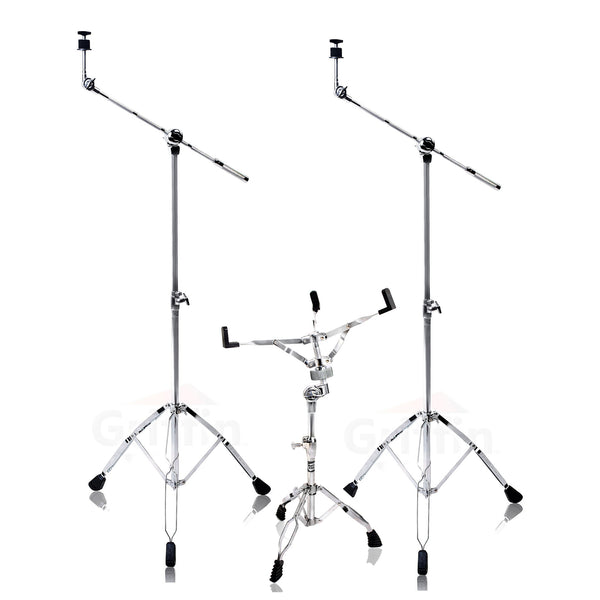 Our Griffin Cymbal Boom Stand and Snare Stand set is engineered to transform your drumming experience, offering a blend of functionality, durability, and aesthetic appeal. This 3-piece hardware pack features two adjustable cymbal boom stands and a robust snare stand, providing comprehensive support for dynamic drumming. The boom stands are designed for exceptional reach and flexibility, allowing you to position your cymbals precisely for the best possible sound. The snare stand is constructed to offer a solid, responsive base, enhancing your drum kit's overall sound quality and responsiveness. Ideal for both practice and performance, this set supports rigorous sessions and energetic live shows, offering stability and reliability that you can depend on. Crafted from high-quality materials, these stands withstand the demands of frequent use and transport, making them a reliable choice for drummers on the move. With easy setup and versatile adjustment features, our hardware set is perfect for drummers seeking to upgrade their kit for enhanced performance. Each component not only meets the practical needs of modern drumming but also enhances the visual appeal of your setup, making this Griffin set a crucial addition to your musical arsenal.