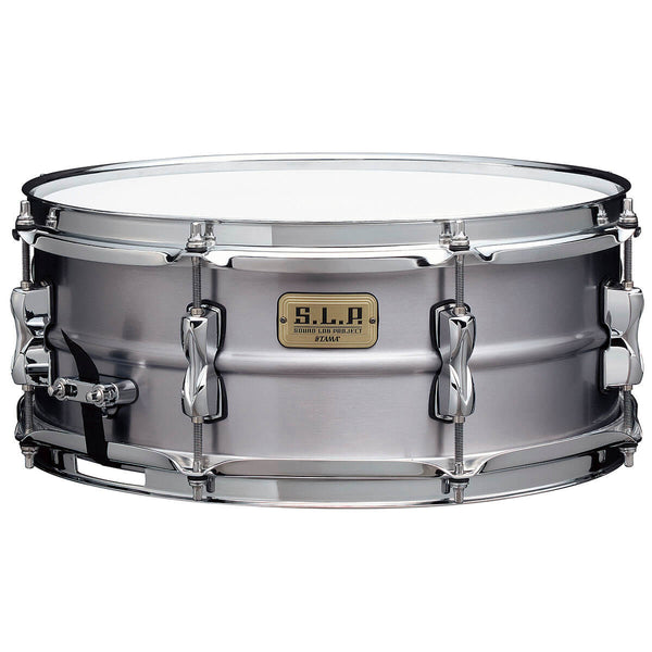 Tama's S.L.P. Classic Dry Aluminum features a seamless 1.2 mm Aluminum shell with a center bead. The 8-lug Steel Mighty Hoops make for a crisp sound with short sustain. The vintage look and sound are reminiscent of the early years of popular aluminum snare drums.