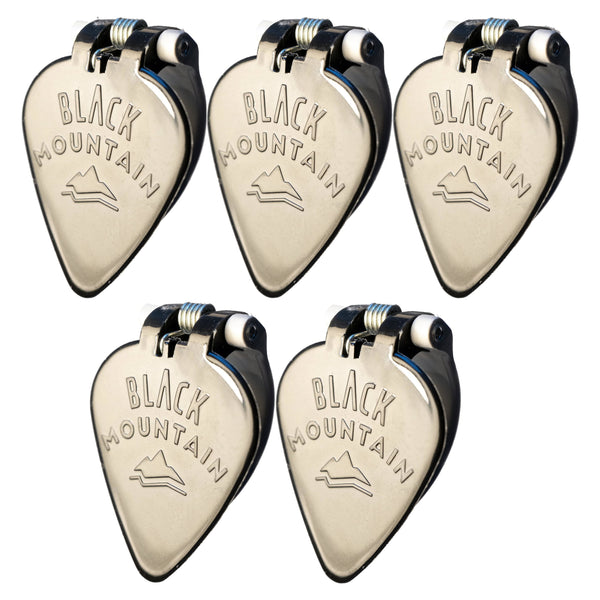 Enjoy the freedom to switch instantly between fingerpicking and flat picking with the Black Mountain Spring Loaded Thumb Pick, a patented design loved by players who want smooth transitions and added control. This pick makes it easy to move from fingers to pick without stopping your performance. The Medium Gauge model features a flexible profile that is ideal for strumming and expressive playing. It measures 1.5 mm at the hinge and tapers to 0.7 mm at the tip with beveled edges. It has a standard pick shape and feels similar to a 0.8 or 0.9 mm nylon pick. The soft grey tapered ring provides both comfort and a secure fit. The spring-loaded arm adjusts naturally to medium to extra large thumbs, giving guitarists a stable and balanced feel. This smart design is perfect for players who blend fingerstyle passages with picked lines in the same song. Invented by guitar teacher Cole McBride, the Black Mountain Thumb Pick was created after years of exploring traditional picks and identifying what players need for better comfort, tone, and technique. This thumb pick gives musicians the flexibility to explore new styles, improve control, and stay inspired every time they play.