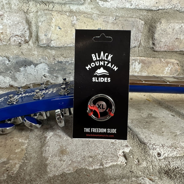 This listing is for a EX-Large Size Slide Ring. Traditional slide tubes take over your pinky or ring finger and basically tell the rest of your hand, “good luck!” The Black Mountain Slide Ring changes everything, it lets you play slide guitar whenever you want without giving up full use of your fingers. With this clever design, you can still play four-finger chords, run four-finger scales, barre with your pinky or ring finger, and then jump into a slide lick the moment inspiration hits. The spring-fit system keeps the slide snug and comfortable, while the Tungsten steel build delivers the rich, singing tone of a full-sized slide packed into a small, versatile ring. Beginners will love how easy it is to explore slide guitar without feeling trapped, and pros will find it opens up a whole new world of creative tricks and transitions. Slide guitar is all about exploring the notes between the notes, and the Black Mountain Slide Ring lets you move between normal playing and slide playing whenever the mood strikes, no swapping gear, no awkward adjustments, just pure musical freedom.