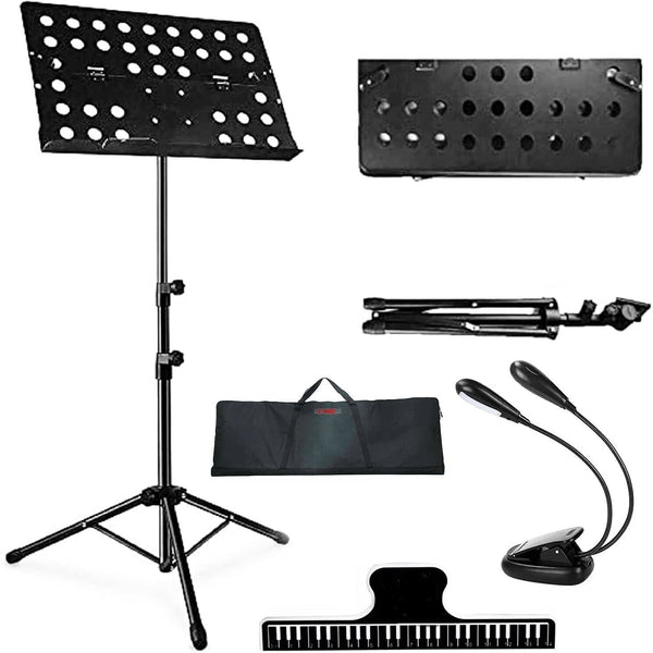 Unleash your musical prowess with our Metal Sheet Music Stand featuring a built-in light, the ultimate companion for violinists, guitarists, or any musician aiming to hit the right notes effortlessly.