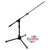 This compact, deluxe short microphone stand with a boom arm is ideal for drummers needing a microphone for their bass drums, musicians mounting a mic in front of guitar amplifiers, or anyone else needing a low-profile microphone stand. This bass drum mic stand with boom arm offers a heavy-duty metal tripod base and boom adaptor making it superior to other stands made of flimsy plastic. Tough and stable with its steel tubing construction, the low-profile microphone stand with boom arm is extremely portable. The three legs retract and fold up into a neat little package when being stored or transported. On the base of those feet, you will find rubber rest pads used to stabilize the kick drum microphone stand with a boom arm, keeping it in place when in use. The telescoping boom arm of this guitar amplifier microphone stand accommodates any standard microphone clip. Specifications: Adjustable telescoping boom arm length from 15 inches to 30 inches | Base shaft height (measured from floor) 8 inches to 19 inches | Leg spread area 19 inches | Individual leg length 10 inches each