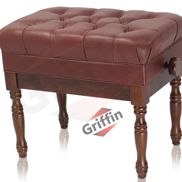 Read MoreTo perform, you must be comfortable and at ease. Thats why the Griffin adjustable genuine leather piano seat is here to help you relax. The seat top is a very thick 3.5" comfortable seat top that is 23 1/4" wide by 15" deep which is covered by 100% genuine leather with an 11 button deep diamond tufted padded seat. |